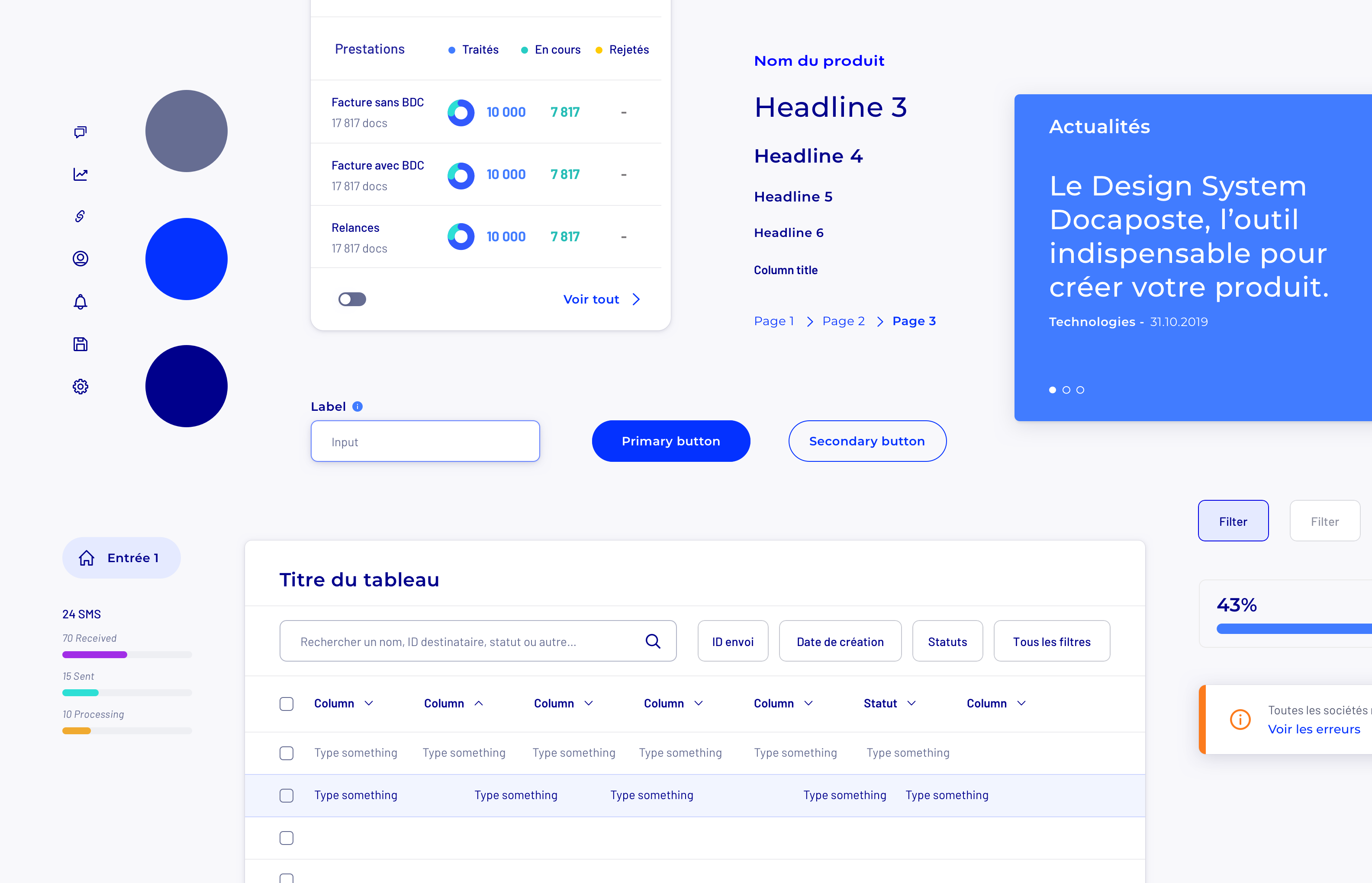 L’objectif du projet est double : Installer la nouvelle identité Docaposte au sein de ces produits & créer un Design System facile à utiliser et adapter à des produits B2B de natures très diverses.