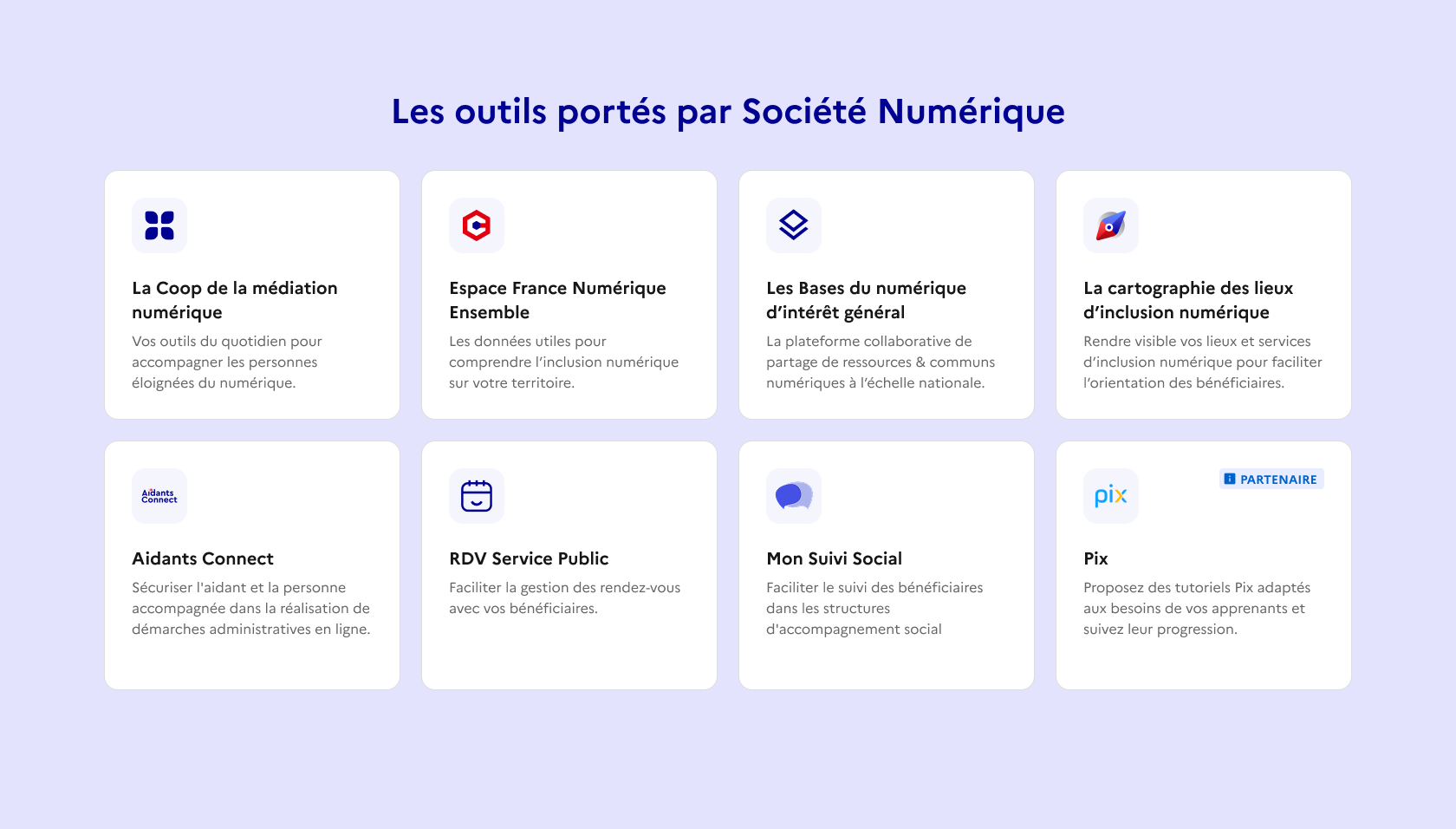 Concevoir un ensemble d’outils numériques utiles à la mise en oeuvre de la politique publique nationale d’inclusion numérique.